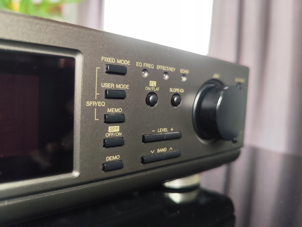 Korektor graficzny Technics SH-GE90. Urządzenie posiadam od nowości, stan oceniam jako kolekcjonerski. Urządzenie sprawne, używane sporadycznie. W zestawie oryginalne opakowanie, karta gwarancyjna.