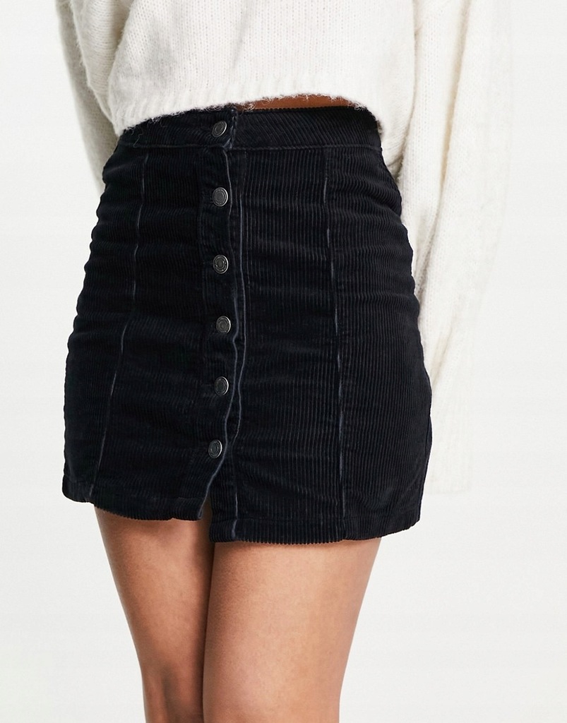 DTT Jordan Czarna sztruksowa spódnica mini z guzikami XL