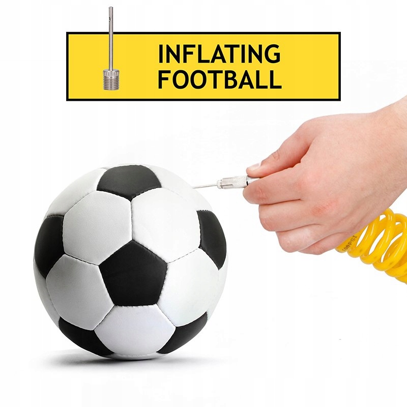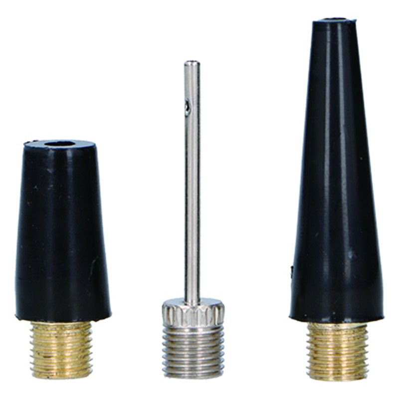 Najdłuższa dysza (od nakrętki o długości około 36 milimetrów) ma średnicę około 5 milimetrów na czubku, a najkrótsza dysza (od nakrętki o długości około 21 milimetrów) ma średnicę około 8 milimetrów na czubku. Trzeci adapter to igła z kulką stalową.