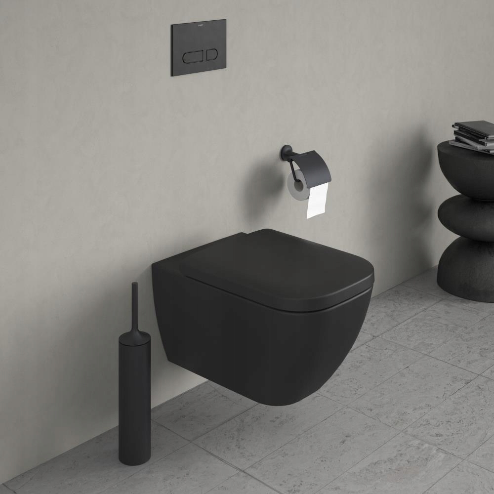Miska WC Rimless w kolorze antracytu matowego od marki Duravit z serii Happy D.2. Wymiary produktu wynoszą 54 x 36,5 x 33,5 cm. Miska przeznaczona jest do montażu wiszącego. Mocowanie Durafix zawarte jest w komplecie. Miska o nowoczesnym designie, który nada wnętrzu każdej łazienki subtelnej elegancji i estetyki. Dbając o maksymalny komfort użytkowania, producent zapewnił oszczędne 4,5-litrowe spłukiwanie. Miska bez rantu spłukującego Rimless, to technologia, dzięki której wyeliminowany został zawinięty brzeg wewnątrz miski WC, który odpowiada za dystrybucję wody do spłukiwania.