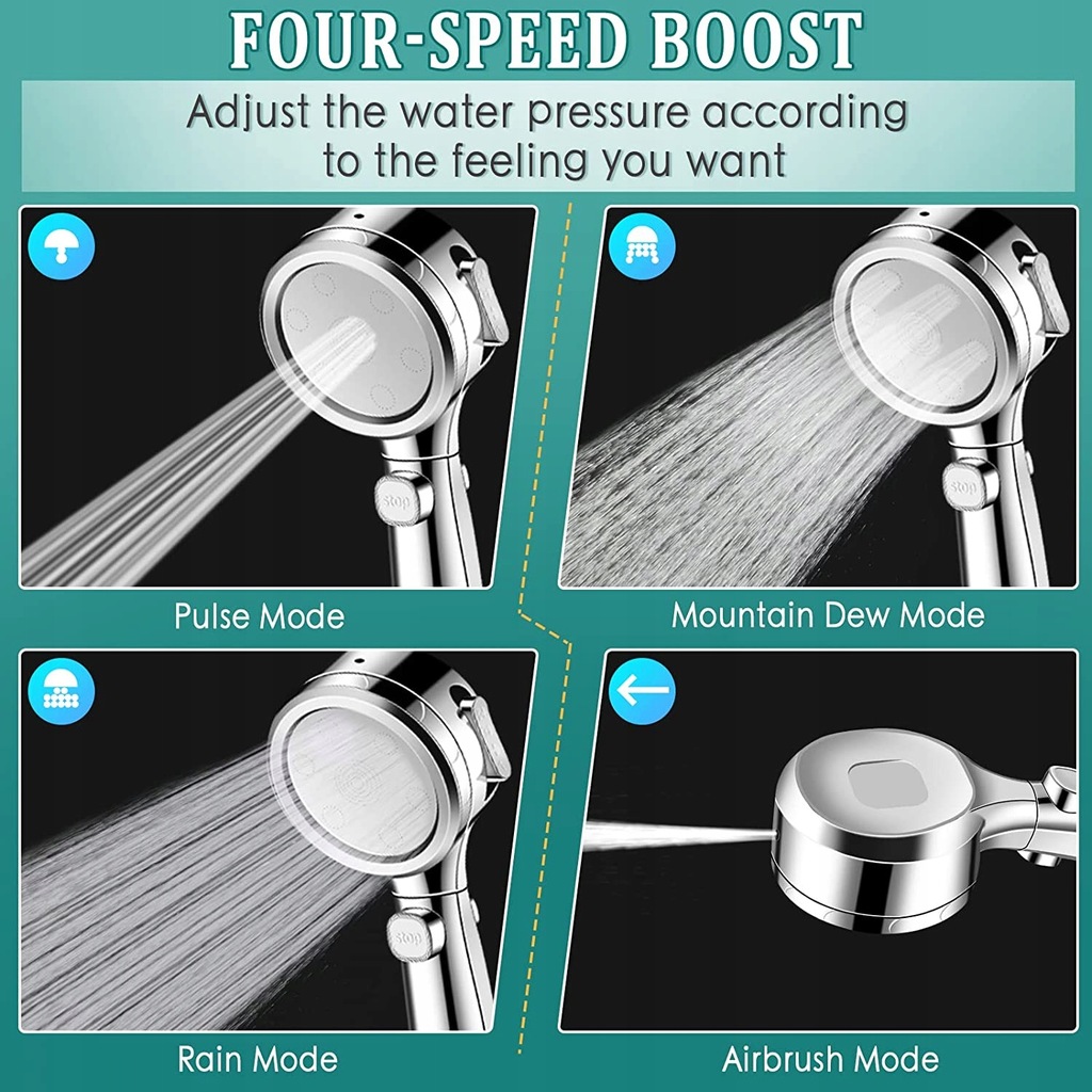 - 4 tryby strumienia - 4 różne wzory strumienia łazienkowej głowicy prysznicowej, w tym prysznic ze strumieniem deszczowym, masaż, jet spa i mocne płukanie. Każdy model może zapewnić inne naturalne wrażenia spa, dzięki czemu Ty i Twoja rodzina możecie cieszyć się relaksującym i komfortowym prysznicem w domu, a także może być używany do codziennego sprzątania łazienki, wygodny do czyszczenia trudnych do czyszczenia narożników łazienki i Wasze łazienkowe ukochane zwierzaki.