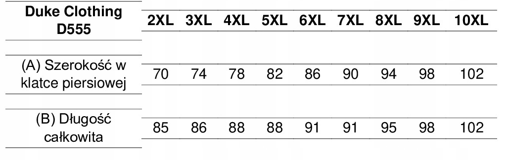 T-shirt D555 jest w ofercie w rozmiarach od 2XL do 6XL