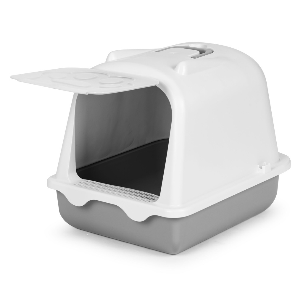 Zabudowana konstrukcja skutecznie eliminuje problem rozsypywania się żwirku poza kuwetę. Została wykonana z bezpiecznych i trwałych materiałów, dodatkowo jej ergonomiczny uchwyt umożliwia łatwe przenoszenie kuwety.