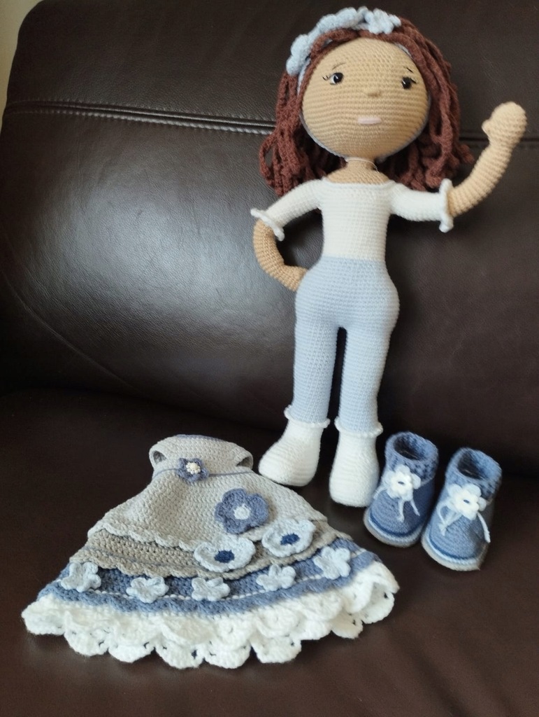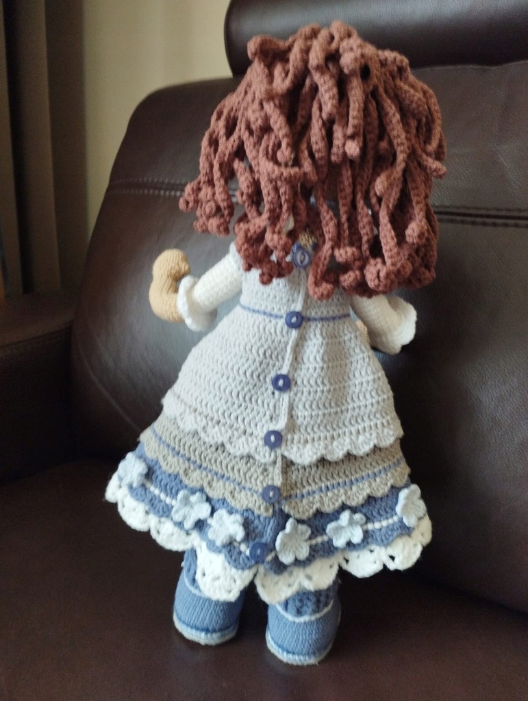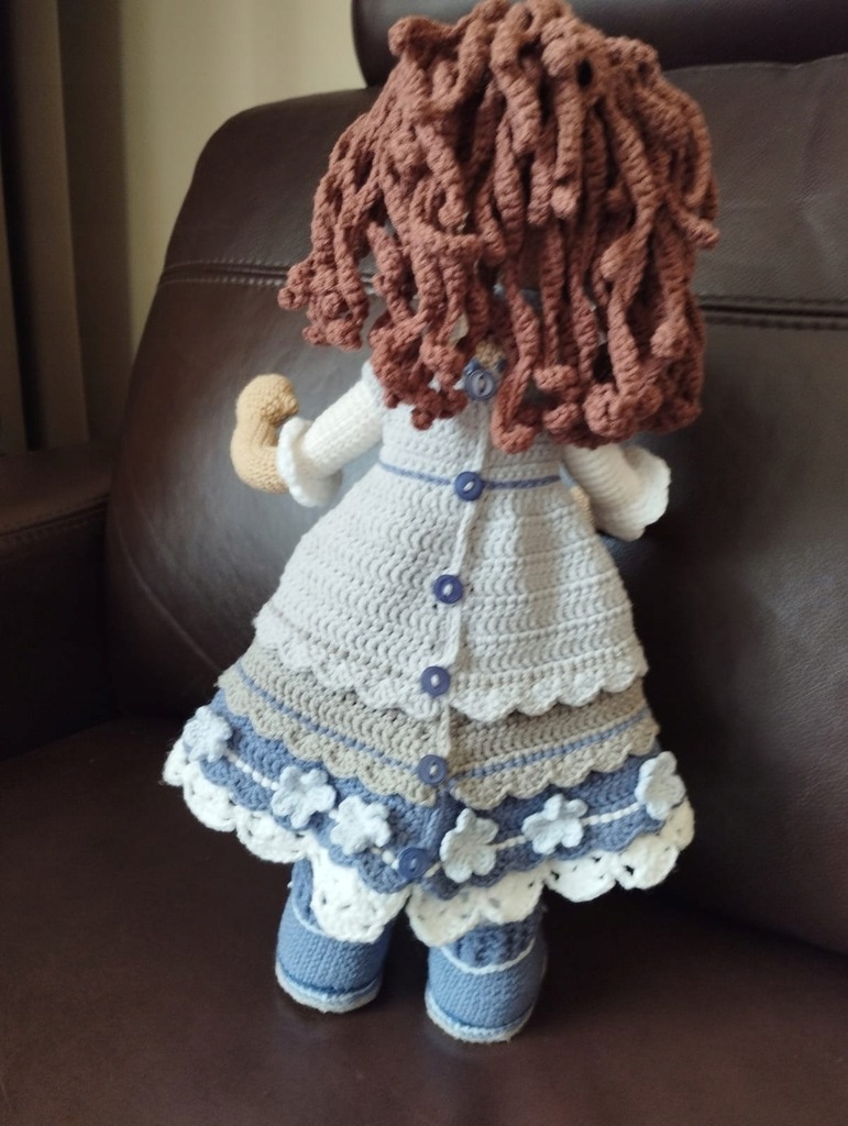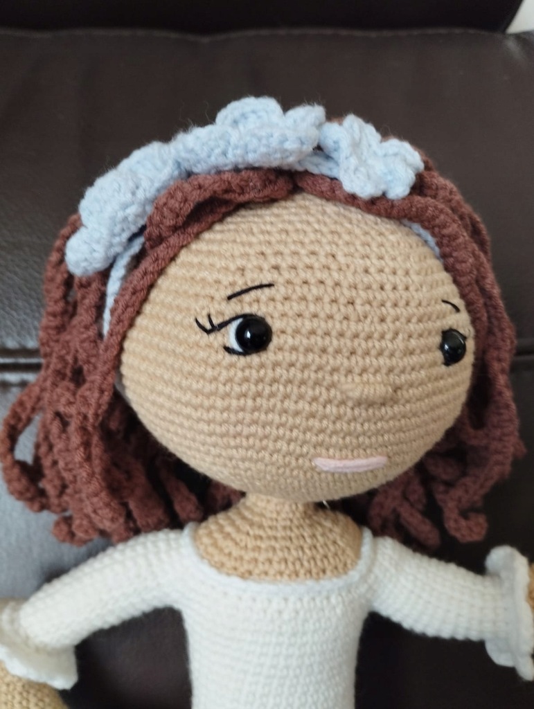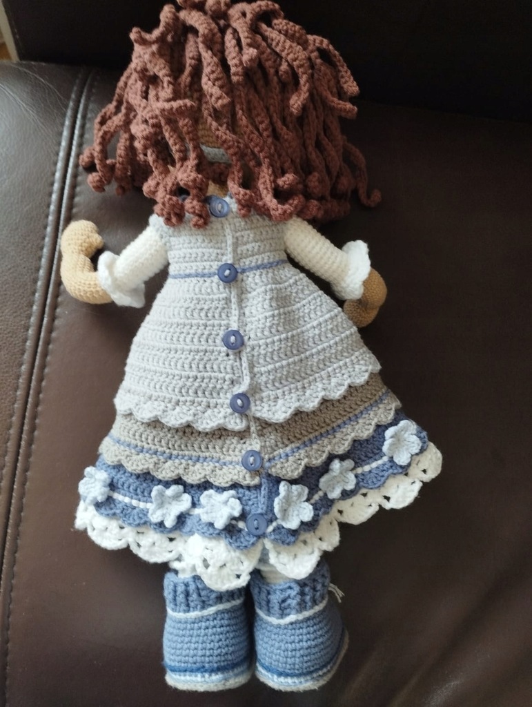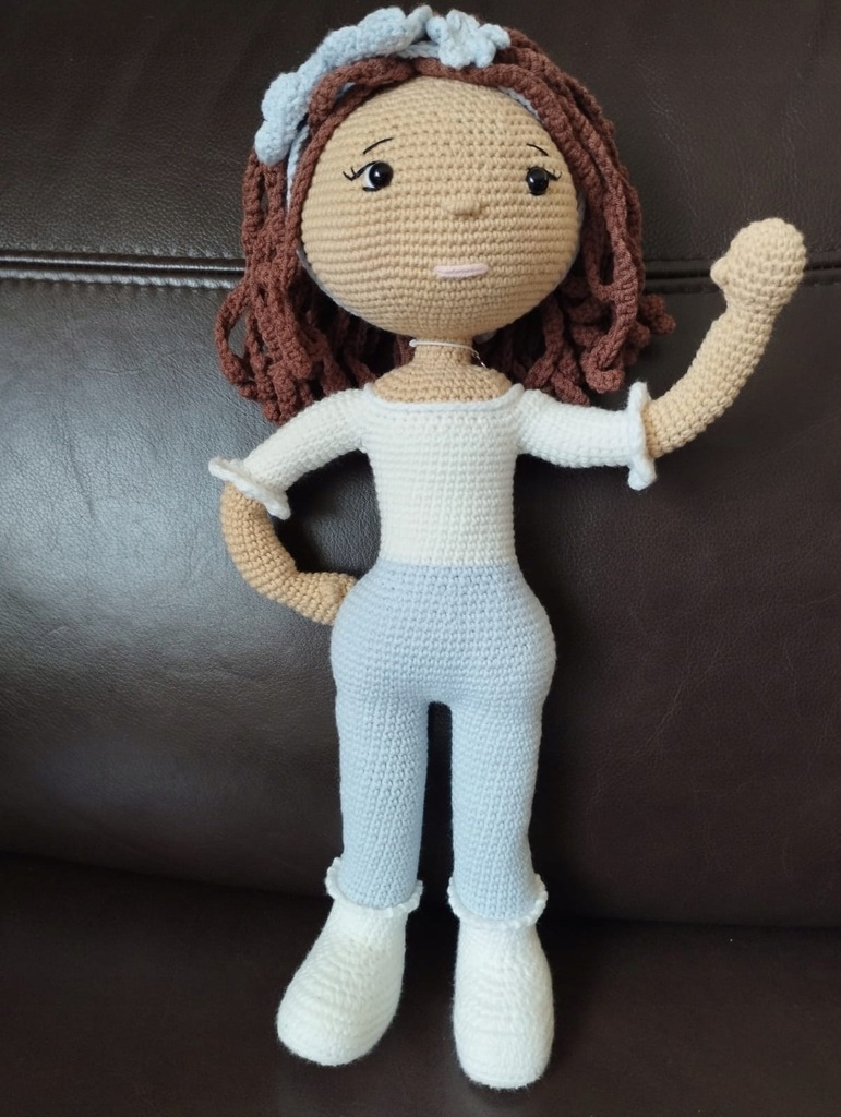 Lalka wykonana z włóczki 100 % akryl - baby Yarn Art , bezpieczna dla dzieci z alergią, włóczką jest nowa , zamontowane bezpieczne oczy na zatrzask od środka, wypełnienie silikonowe, wielkość 44 cm. Wykonanie takiej lalki jest bardzo pracochłonne, zajmuje mi około 7 dni.