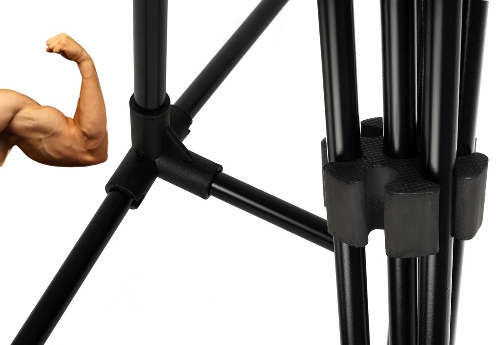 Specjalny łącznik do rur umożliwia wygodne i zwarte przechowywanie elementów stelaża, zapobiegając ich przemieszczaniu i rysowaniu. Dzięki temu wszystkie części zestawu pozostają w dobrym stanie, gotowe do ponownego użycia – bez bałaganu i uszkodzeń.