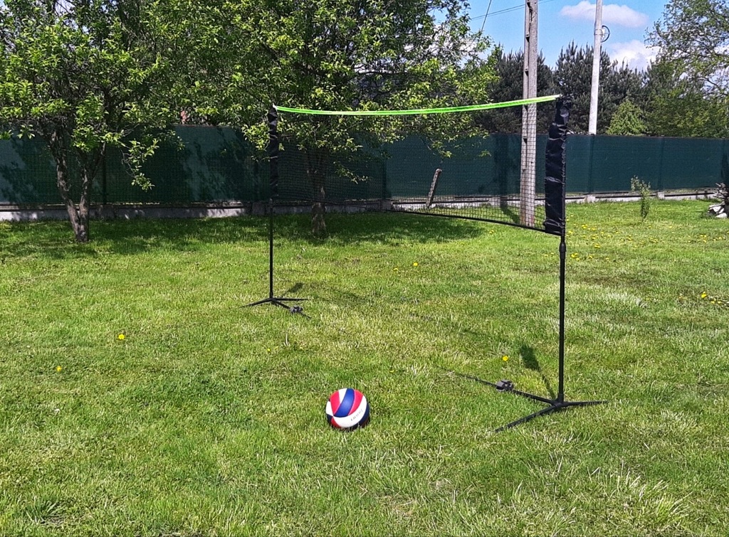 ✔️ stabilna - dzięki mocnemu stalowemu stelażowi malowanemu proszkowo, linkom i śledziom stabilizującym, przenośna siatka do siatkówki trzyma się pewnie nawet przy intensywnej grze na zewnątrz