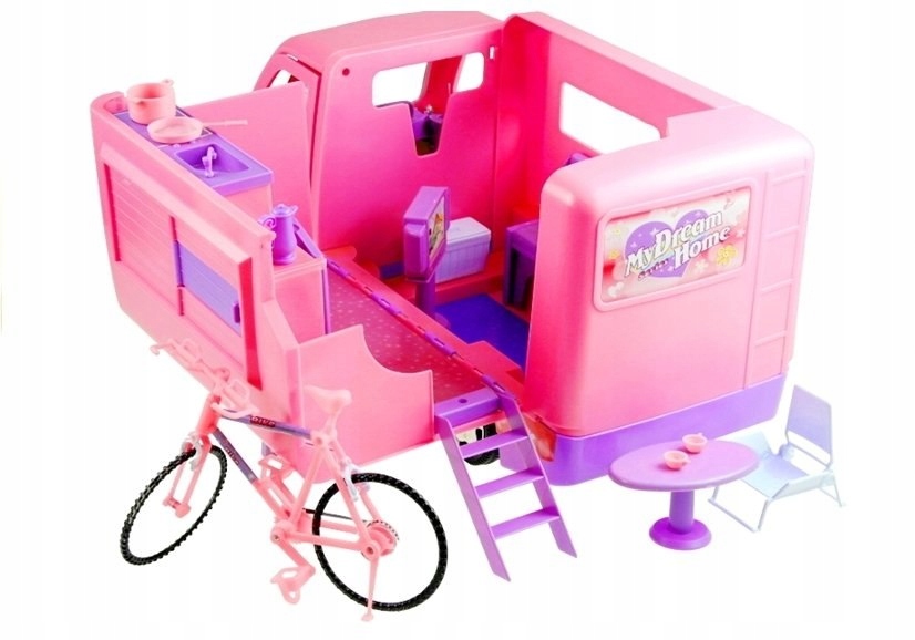 Camper Camping Różowy Pojazd Dla Lalki Rower 50 cm