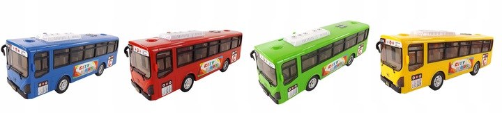 Autobusik posiada gumowe koła z napędem manualnym. Po pchnięciu autobusy tylne koła się nakręcają i autobus sam jedzie do przodu.