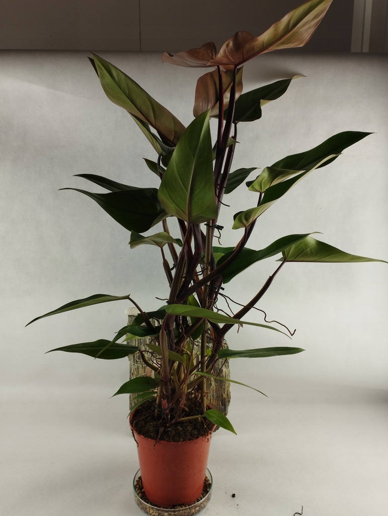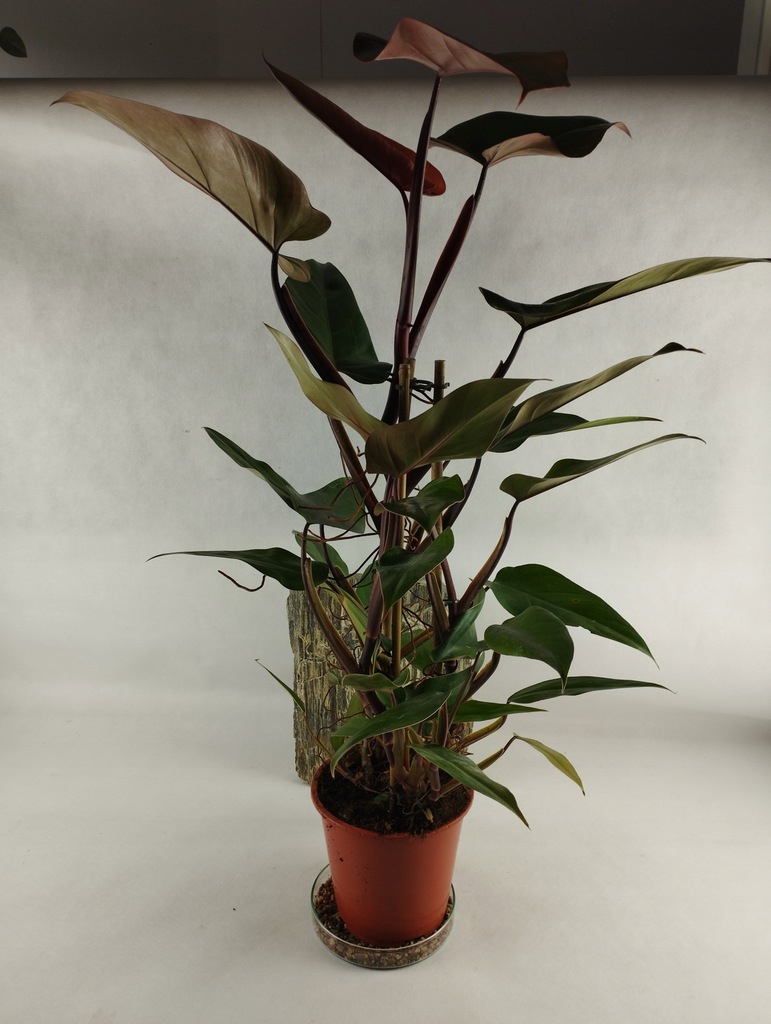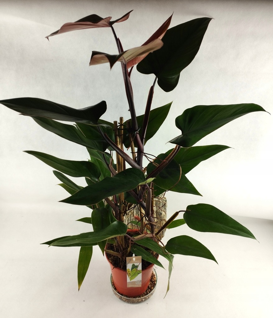 to piękna, ciemnolistna hybryda, która zniewala wzrok wyjątkową barwą liści. Tworzy początkowo zwarty pokrój ze sztywnymi liśćmi, osadzonymi na grubych ogonkach i wyrastającymi wokół grubego pędu. W miarę wzrostu pęd wydłuża się i nabiera formy pnącej. Liście są stosunkowo duże, mają sercowaty, wydłużony i ostro zakończony kształt, a ich powierzchnia olśniewa eleganckim połyskiem. Młode liście są początkowo wiśniowe, następnie ciemnieją, by ostatecznie zachwycić rzadko spotykaną barwą - mieszanką odcieni ciemnego brązu, purpury i ciemnej zielni. Z barwą liści idealnie korelują ciemnopurpurowe ogonki liściowe. Niezwykle czarujące wybarwienie w połączeniu ze lśniącą powierzchnią blaszki nadaje roślinie eleganckiego, wręcz luksusowego wyglądu i kojarzy się z wypolerowaną na wysoki połysk, skórzaną tapicerką.Dzięki zachwycającej barwie i atrakcyjnej formie będzie wyjątkowym rarytasem w kolekcji roślin domowych. Pięknie będzie się prezentował zarówno samodzielnie, w reprezentacyjnym miejscu, jak również w towarzystwie innych barwnych filodendronów oraz tropikalnych roślin o ozdobnych liściach.