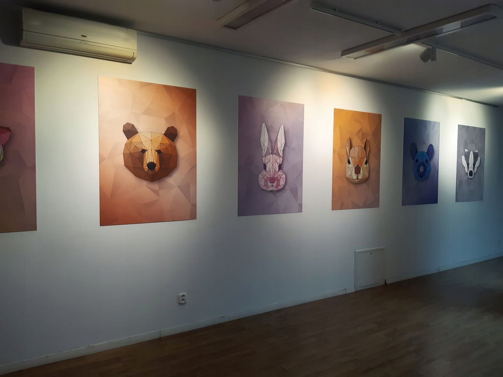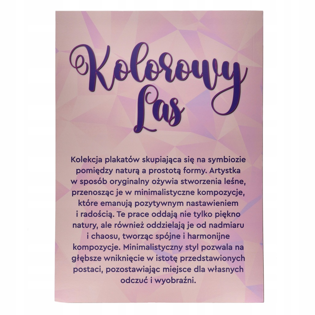 Kolekcja „Kolorowy Las” zadebiutowała na wystawie w warszawskim domu kultury 3 Pokoje z Kuchnią w dniach 15 – 28.09.2023 r. Jest to produkt powystawowy, tektura na rewersie może być nadszarpnięta przez taśmę, nie wpływa to jednak na ogólną prezentacje plakatu.