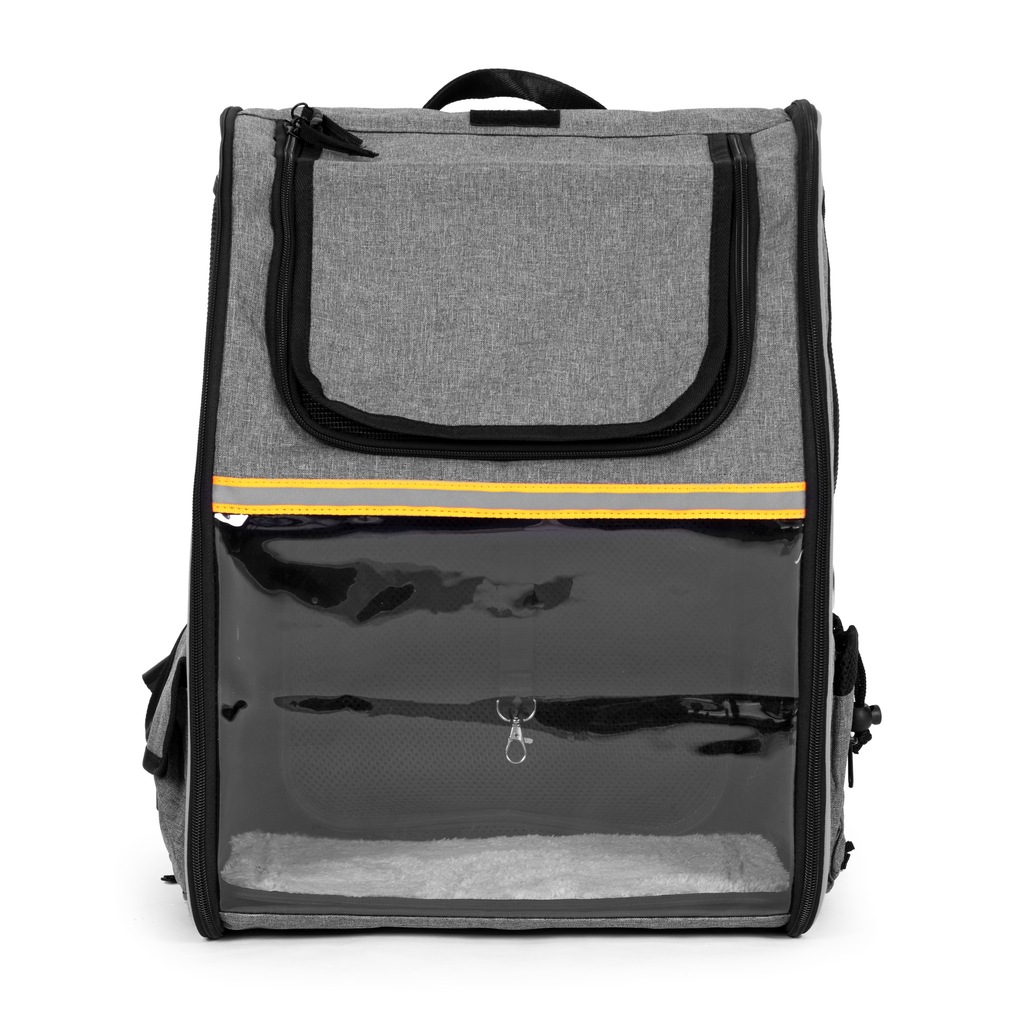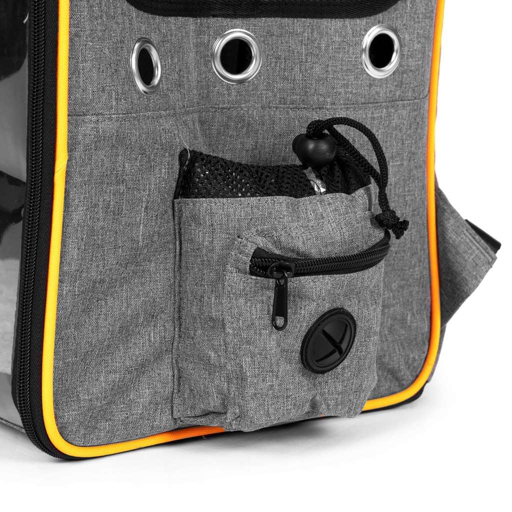 Głównym elementem tego plecaka jest przednia, przezroczysta szybka, wykonana z wytrzymałego i bezpiecznego materiału. Szybka zapewnia doskonałą widoczność oraz ochronę przed warunkami atmosferycznymi, jednocześnie umożliwiając twojemu pupilowi obserwowanie świata na zewnątrz. Bez względu na to, czy podróżujesz pieszo, rowerem czy też korzystasz z innych środków transportu, twój podopieczny będzie mógł cieszyć się widokiem i uczestniczyć w podróży. W górnej części znajduje się podwijane wejście oraz siatka zapinana na zamek, dzięki dużej średnicy otworu bez problemu włożysz lub wyjmiesz swojego zwierzaka.