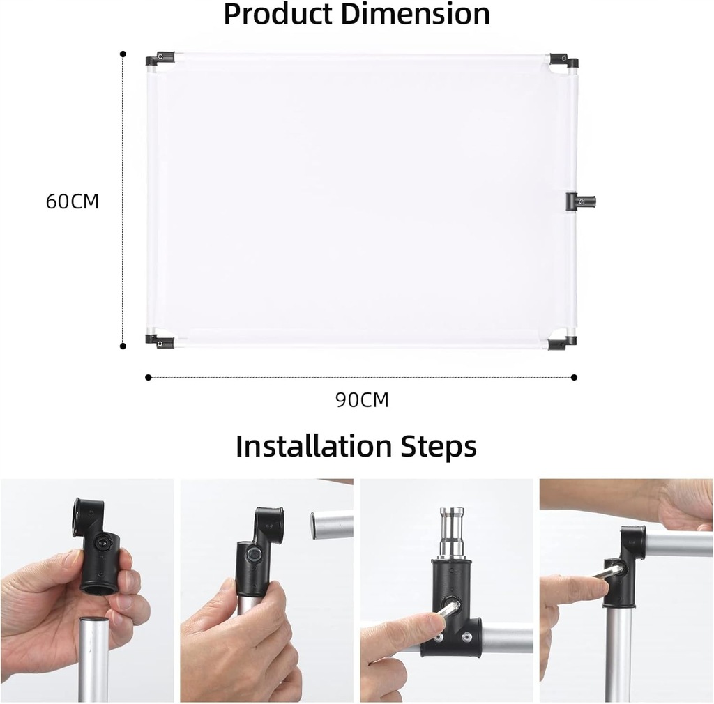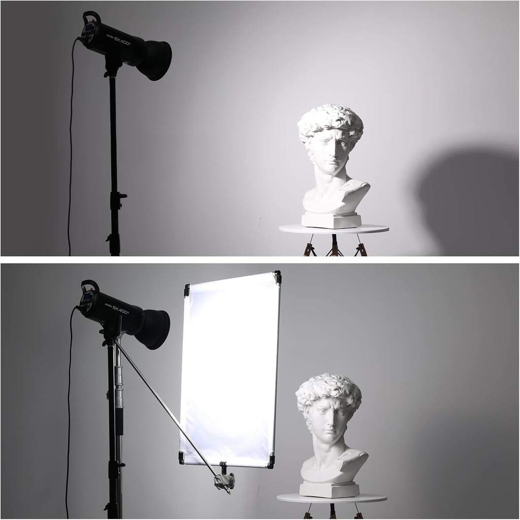 Zadbaj o perfekcyjne oświetlenie na swoich zdjęciach i filmach dzięki składanemu dyfuzorowi fotograficznemu o wymiarach 90 x 120 cm! Ten przenośny element jest idealny do użytku w studiu, w plenerze czy podczas domowych sesji, pomagając zmiękczyć światło i zredukować cienie.