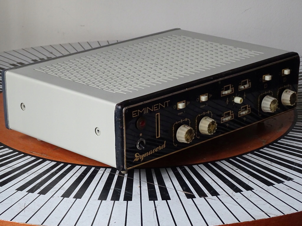 - BemerkungErstes Modell aus der EMINENT-Serie. 4 Vorverstärker, 2 Pegelverstärker, eine Phasenunkehrstufe, eine Gegentaktendstufe. 5 Eingänge, davon 4 mischbar. Leistungsanzeige mit magischem Band.