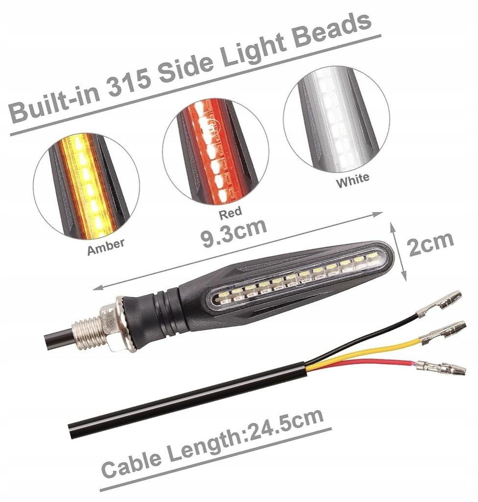 Łatwy w instalacji typ wtyczki: czarny przewód jest ujemny, żółty przewód jest podłączony do kierunkowskazu, biały przewód jest podłączony do ACC lub światła instrumentu, czerwony przewód jest podłączony do światła hamowania, bezpośrednio montowany do oryginalnego kierunkowskazu