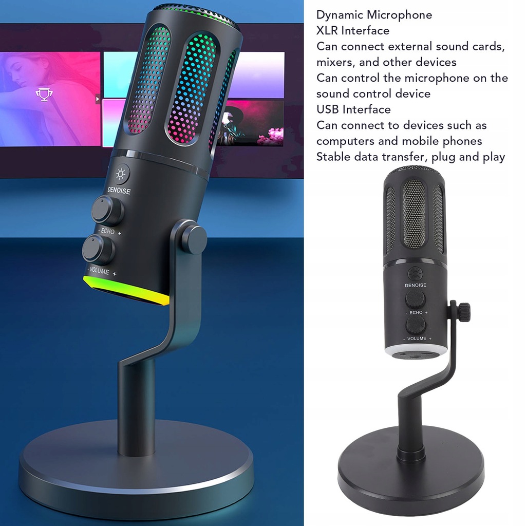 1. Interfejs XLR: Mikrofon jest wyposażony w interfejs XLR i może być podączony do zewnętrznych kart dźwiękowych, mikserów i innych urządzeń, może być kontrolowany na urządzeniu sterującym dźwiękiem.