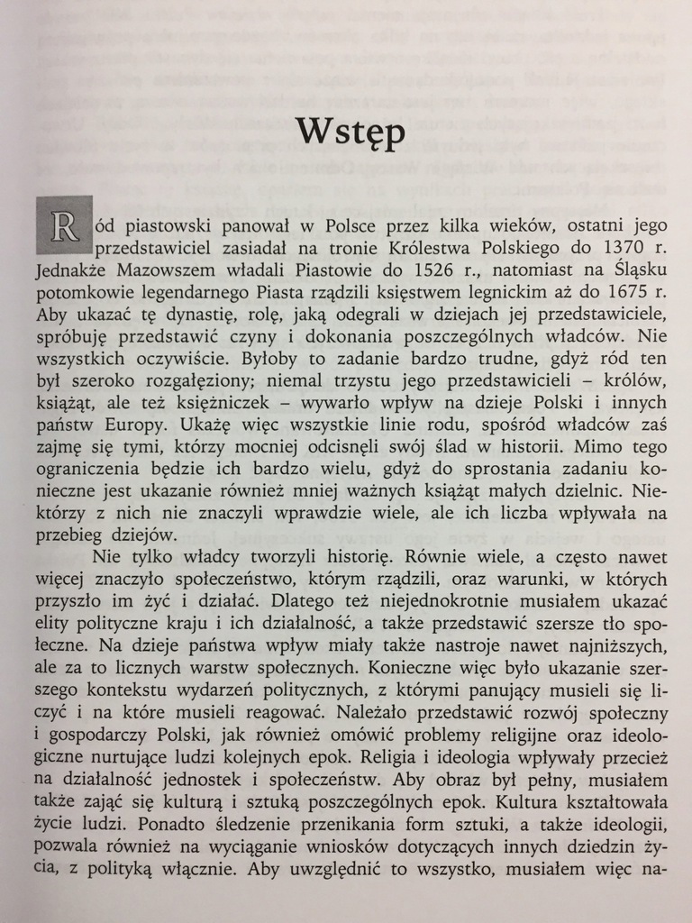 Publikacja poświęcona dziejom Piastów w Polsce. Na podstawie najnowszych odkryć i często kontrowersyjnych hipotez autor przedstawia narodziny państwa polskiego, mechanizmy jego terytorialnego wzrostu i potęgi. W ciekawej formie ukazuje rywalizację Piastów z innymi rodami Europy Środkowej o dominację w tej części ówczesnego świata. Dzięki prezentacji szerokiego tła historycznego książka ma ogromne walory poznawcze i edukacyjne.