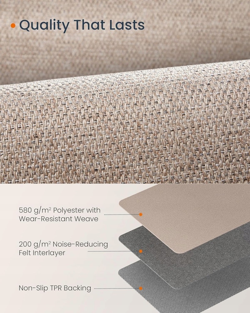 Ten dywanik wykonany z poliestru o gramaturze 580 g/m² jest odporny na zużycie i zarysowania oraz zapewnia długą żywotność.