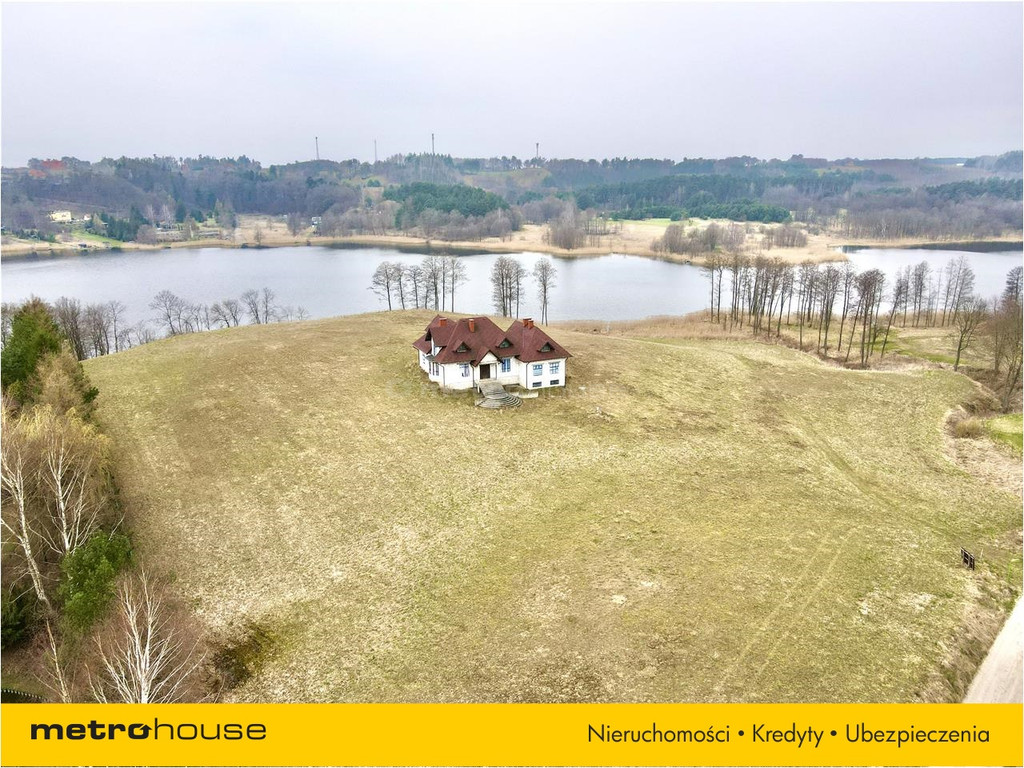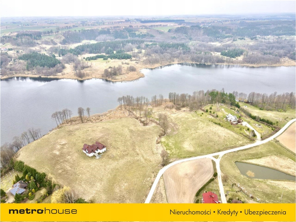 Nad samym brzegiem jeziora leży niemal 3 hektarowa działka zabudowana domem w stanie surowym o pow. ok. 280 m2.