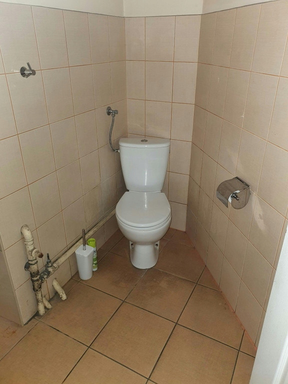 Na podłodze płytki, na ścianach gładź.