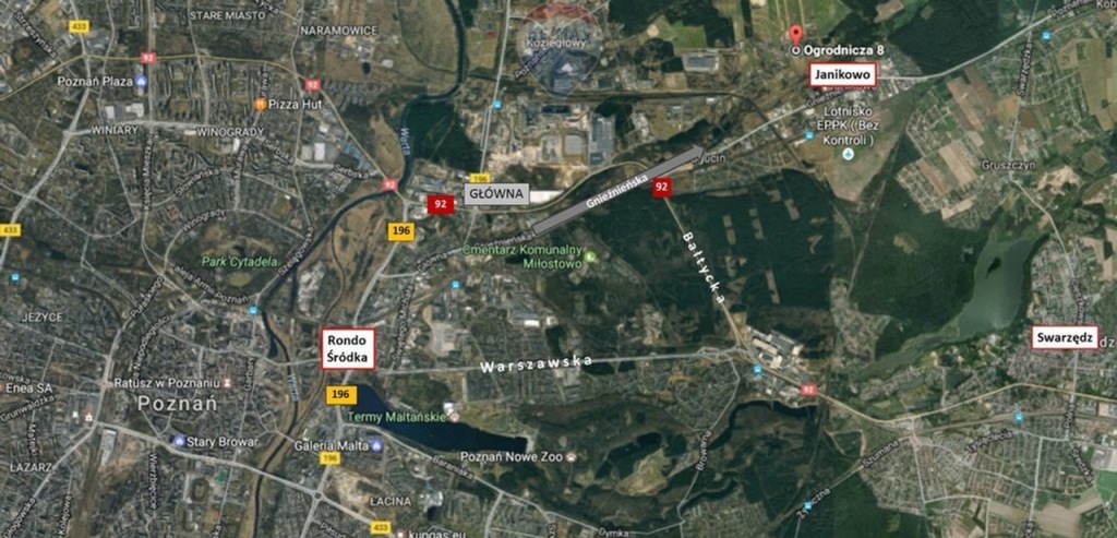 - dworzec PKP i PKS Poznań Główny ok. 11 km