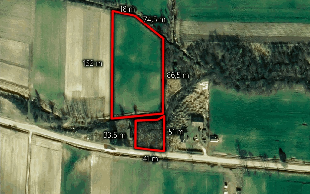 Powierzchnia działki: 11328 m2 (szerokość około: 70-41 m / długość około: 137,5-152 m)