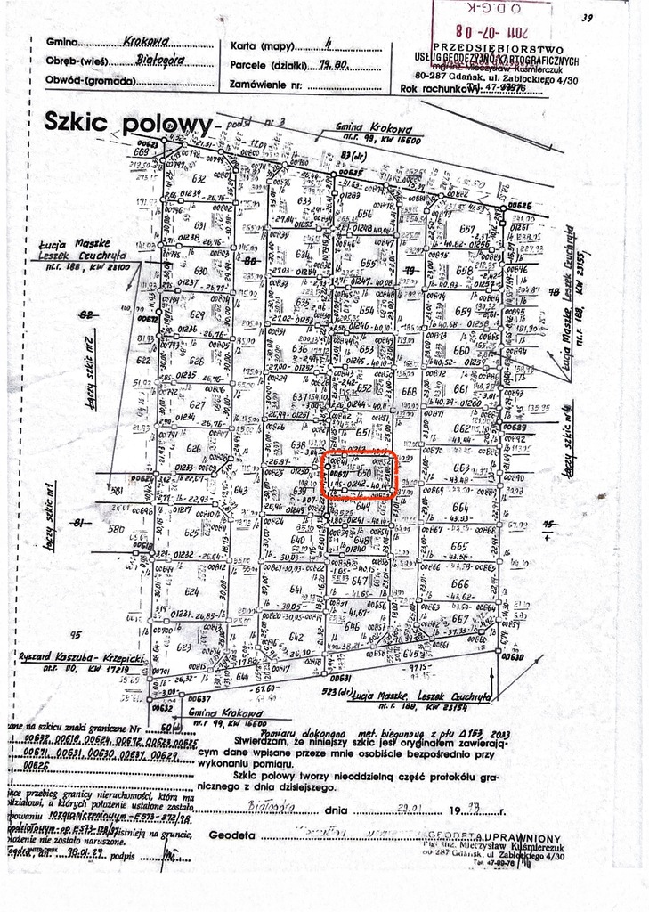 Sprzedam działkę położoną we wsi Białogóra, gmina Krokowa.