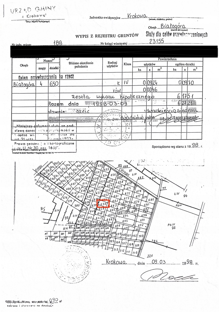 Działka o nr 650 w rejonie ulicy Zielonej i ul Osiedlowej (ul. Osiedlowa prowadzi do stadniny koni Białogóra)