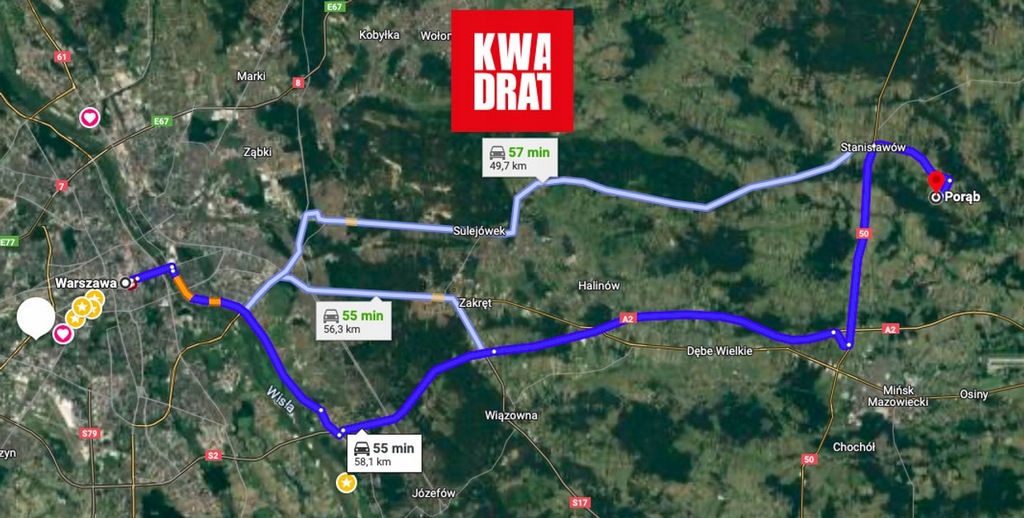 Bardzo dobry dojazd autem z Warszzawy- autostrada zjazd na dk 50 lub za Mińskiem Mazowieckim przez Jakubów lub drogą krajowa przez Sulejówek.