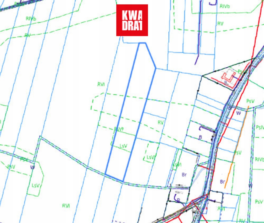 Pomiędzy działkami przebiega rów melioracyjny, który na mapach Geoportal wygląda jak droga.
