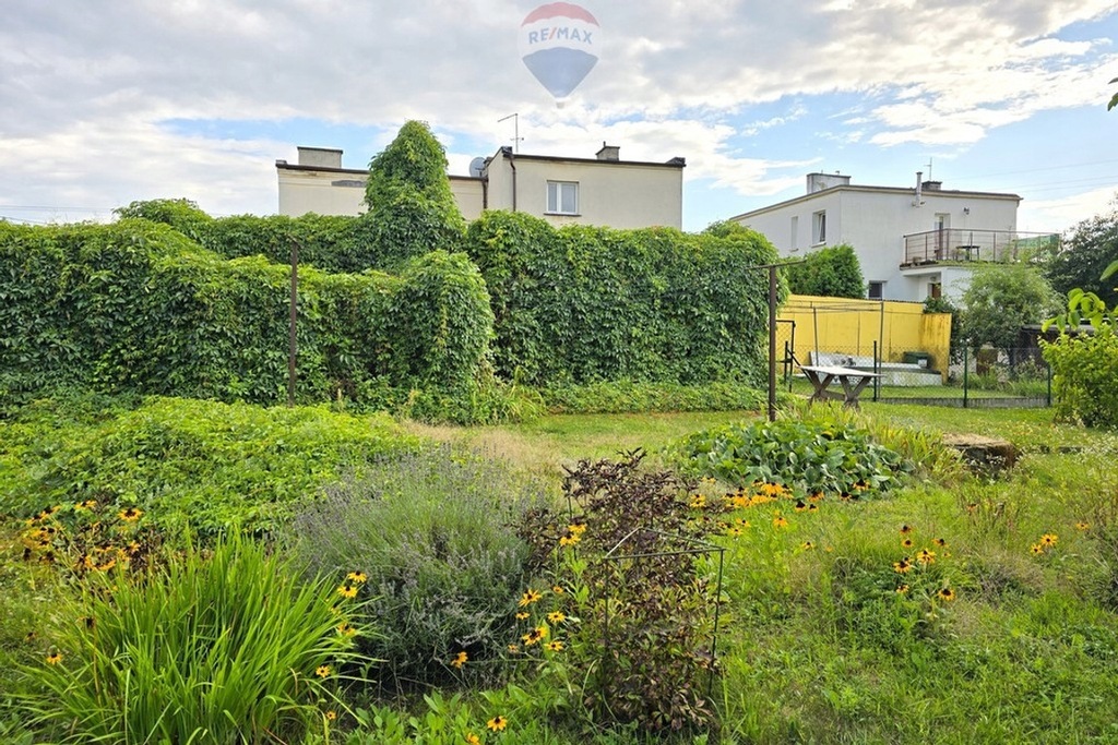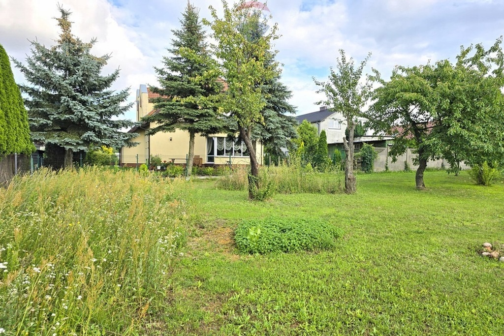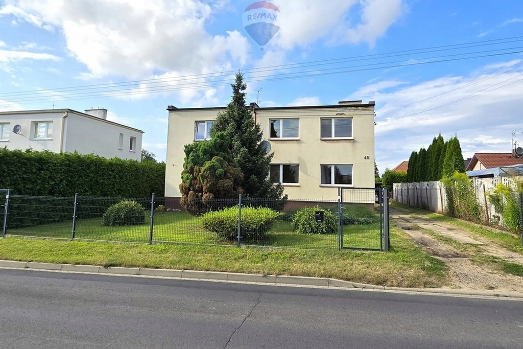 Działka obecnie zabudowana jest z przodu domem (206 m2 powierzchni użytkowej, 216 m2 powierzchni całkowitej) w zabudowie bliźniaczej. Możliwość wydzielenia dla każdej z dwóch części domu odrębnej Księgi Wieczystej lub utworzenia w budynku niezależnych mieszkań, czy też po rozbiórce prawej, starszej części domu, uzyskania atrakcyjnej działki do zabudowy.