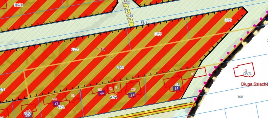 Do działki doprowadzona jest droga od ulicy POLNEJ- jako służebność przejazdu i przechodu (po prawej stronie działek: 36/1, 36/2, 36/3)