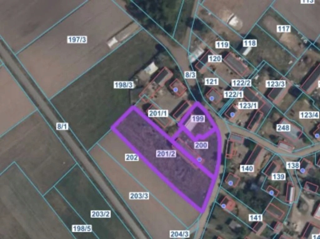 Nieruchomość rolna zabudowana na działce nr 199 budynkiem gospodarczym drewnianym, parterowym, o pow. zabudowy 91 m2 , pow. użytkowej 80 m2 . Więźba dachowa drewniana- pokryta blachą. Budynek wybudowany w 1988 r. Obiekt w słabym stanie technicznym, otwory okienne i drzwiowe drewniane, posadzki cementowe. Na działce o nr 200 i 201/2 usytuowany jest: 1) Budynek mieszkalny o pow. zabudowy 68 m2 , pow. użytkowej 57 m2 . Obiekt murowany 2- kondygnacyjny/ wysoka piwnica/, podpiwniczony o konstrukcji tradycyjnej, ścianach warstwowych z pustaka o gr. 38 cm. Stropy i schody żelbetowe, więźba dachowa drewniana- pokryta eternitem. Obiekt wybudowany w 1989 r. Otwory okienne i drzwiowe drewniane, posadzki betonowe. Ogrzewanie co. z pieca węglowego, woda z wodociągu gminnego, kanalizacja do szamba sanitarnego. Budynek opuszczony zdewastowany.; 2) Budynek inwentarsko składowy, dobudowany do domu mieszkalnego od strony północno- zachodniej, murowany o pow. zabudowy 273 m2 , pow. użytkowej 238 m2 . Obiekt parterowy w części inwentarskiej z poddaszem użytkowym, konstrukcja więźby dachowej drewniana- pokryta eternitem. W części inwentarskiej strop żelbetowy. Obiekt wybudowany w 1989 r., drzwi drewniane obite blachą, okna PCV, posadzki cementowe. Wyposażenie budynku w prąd i wodę z wodociągu.