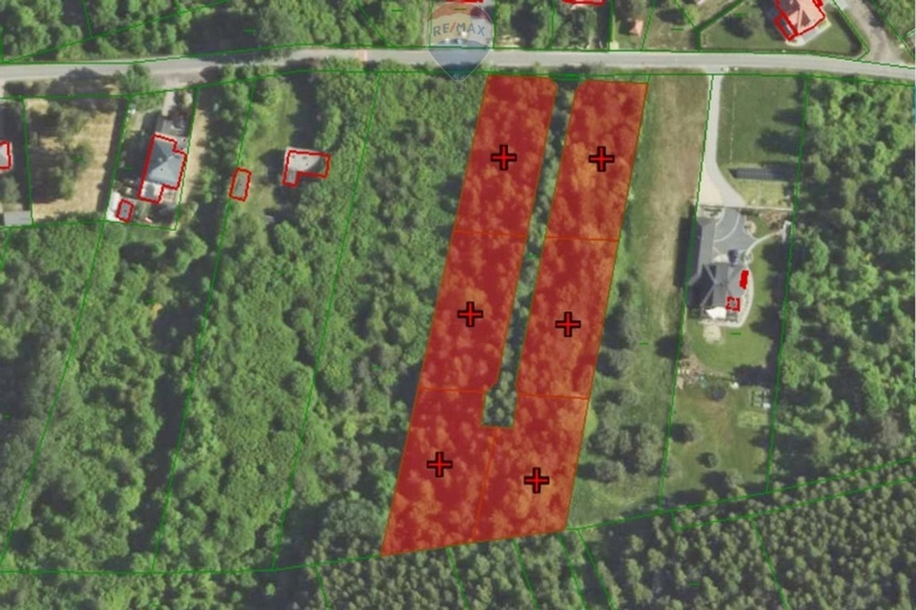 • Działka w kształcie nieregularnym - płaska, częściowo zalesiona