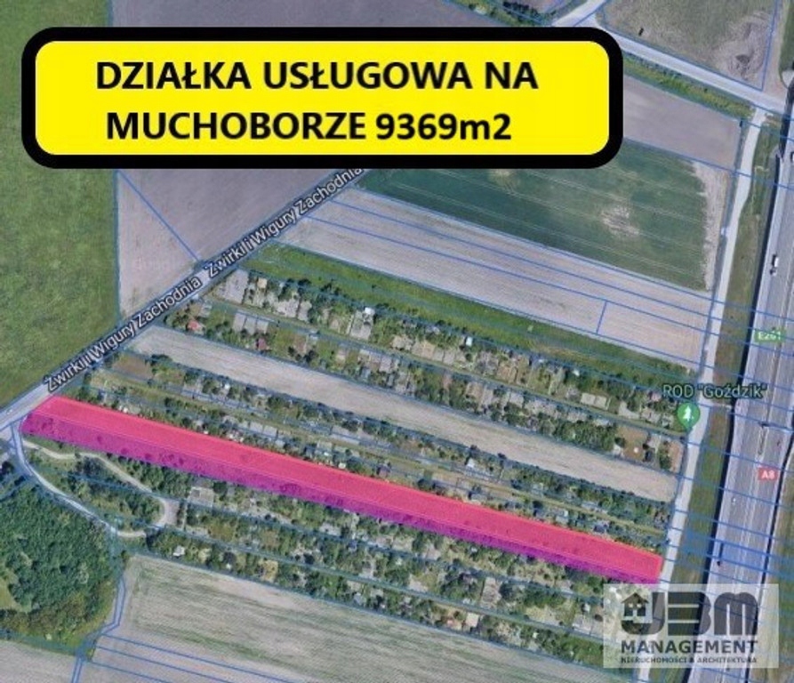 Na sprzedaż działka inwestycyjna we Wrocławiu na osiedlu Muchobór Wielki ( zachód miasta) przy ul. Żwirki i Wigury, tuż przy autostradowej obwodnicy Wrocławia.