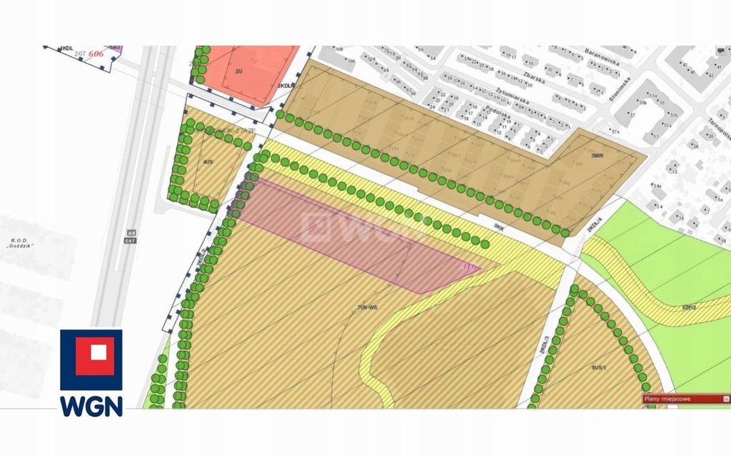 W planie zagospodarowania przestrzennego przedmiotowy teren oznaczony jest symbolem 7 US-WS.