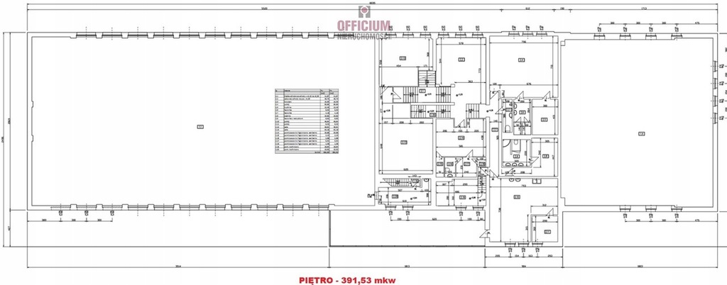 PIĘTRO - łączna powierzchnia 391,52 mkw - obejmuje klimatyzowane 3-4 pokoje biurowe ( powierzchnia pokoi od 35-45-60 mkw ), stołówkę, kuchnię, łazienkę, szatnię , wc , pomieszczenie które można zaadoptować na mieszkanie służbowe.
