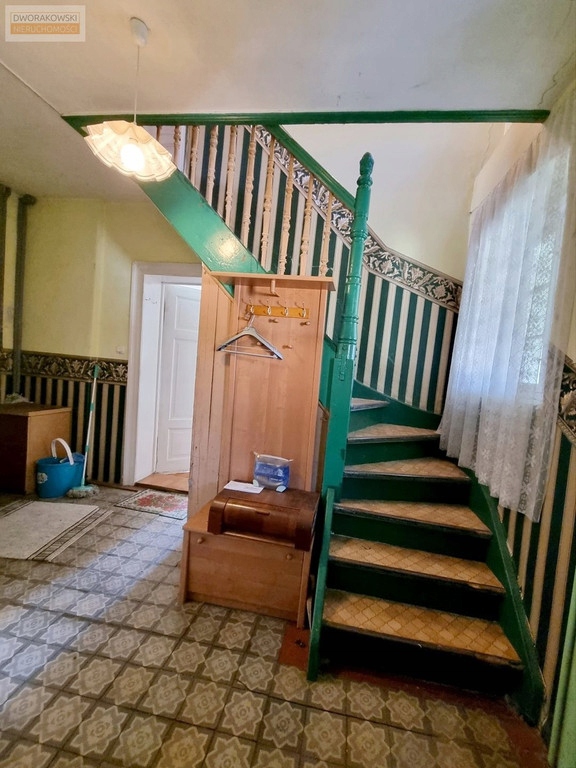 - budynek mieszkalny jednorodzinny, dwukondygnacyjny podpiwniczony, o powierzchni łącznej 250 m2, pow. użytkowej 200 m2 (lokal w środku nadaje się do remontu). W budynku zachowało się wiele zabytkowych mebli oraz wyposażenia z okresu powojennego. Na działce budynek garażowo - gospodarczy. Ogólny stan budynku dobry. Działka ogrodzona, po sąsiedzku zabudowa wielorodzinna (wydzielona w przeszłości z oferowanej nieruchomości).