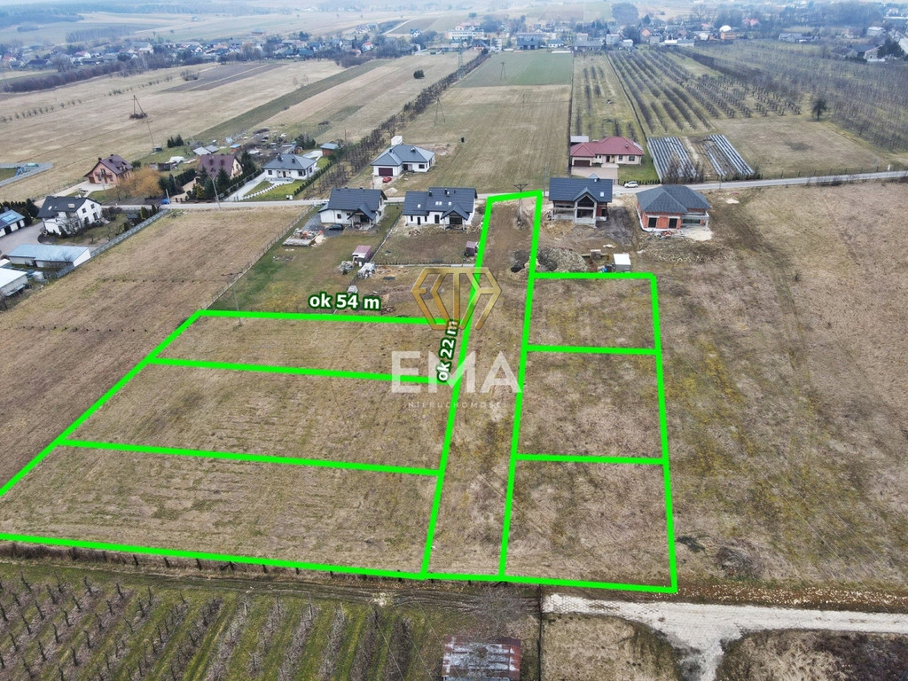 Działka znajduje się na terenie który został niedawno podzielony i utworzony został kompleks 6 działek budowlanych z drogą wewnętrzną.