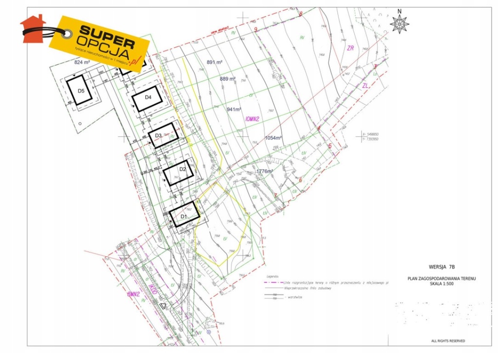 Właściciel posiada projekt architektoniczny dla 6 domów.