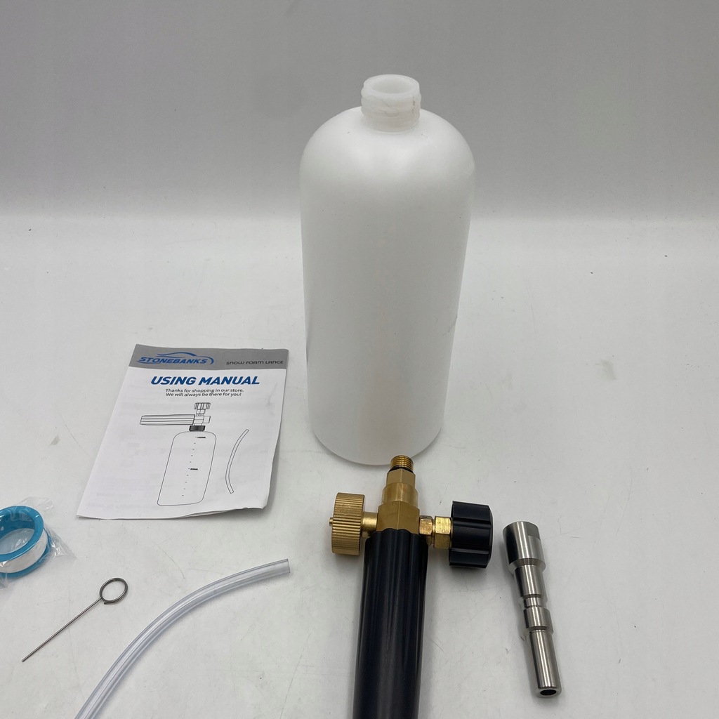 - Wskazówki dla początkujących: Najpierw wymieszaj szampon do prania i wodę, potrząśnij regulowaną butelką z pianki armatniej, aby stworzyć miękką i puszystą piankę śnieżną. Następnie spryskaj piankę na czyszczoną część. Na koniec spłucz powierzchnię samochodu wodą z kranu.