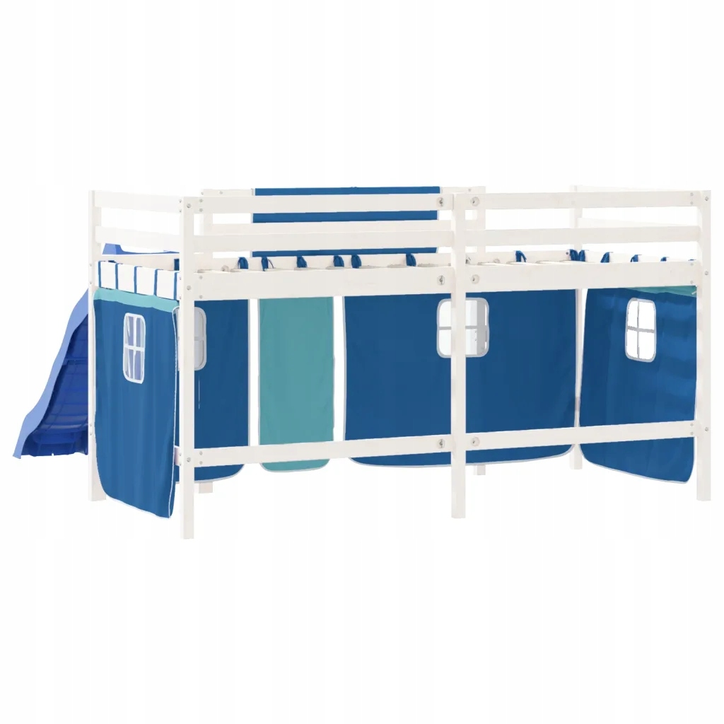 Dziecięce łóżko na antresoli, niebieskie zasłonki, 90x200 cm