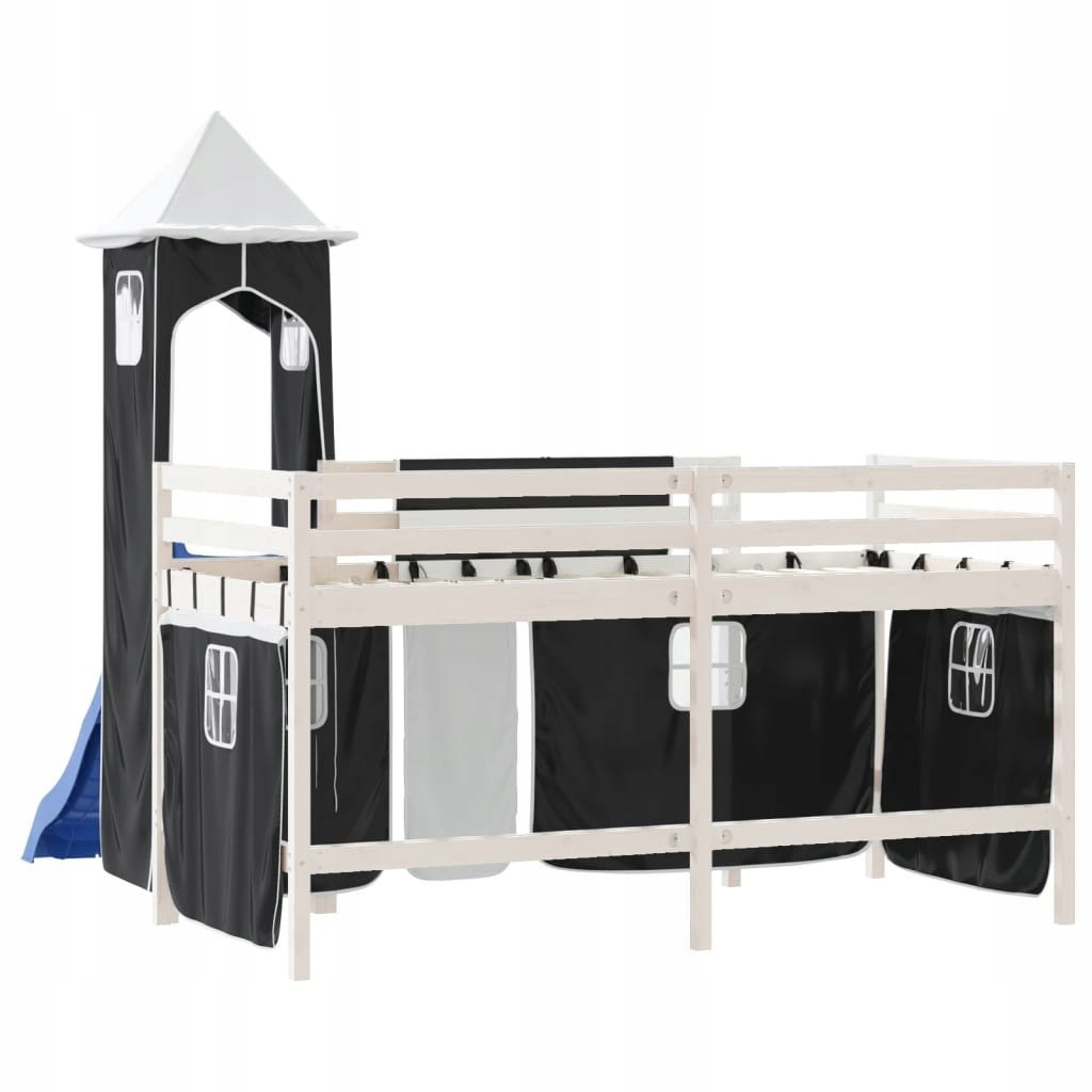 Dziecięce łóżko na antresoli, z wieżą, biało-czarne, 90x200 cm