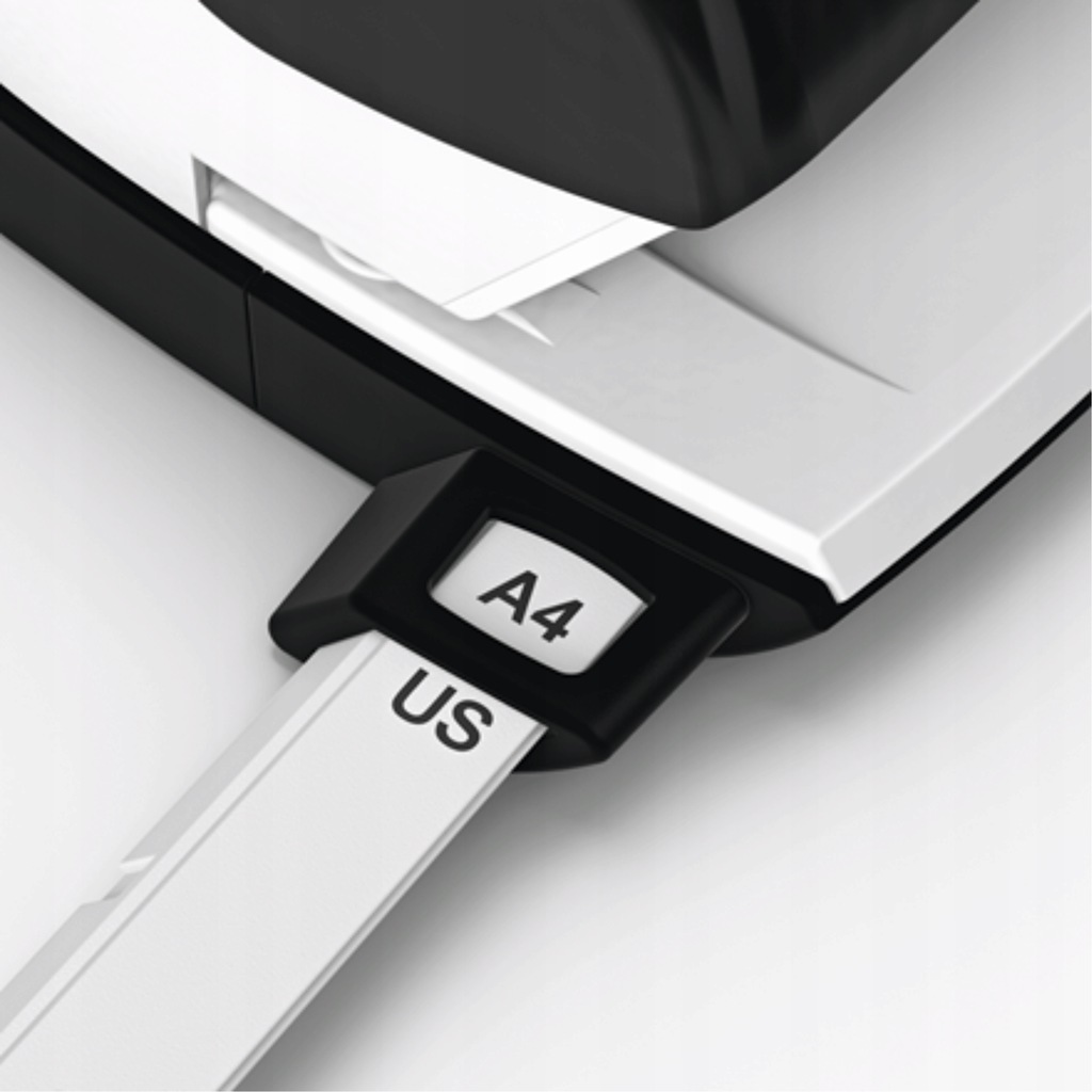 - Wyraźne oznaczenia formatu i wytrzymała prowadnica zapewniają doskonałe wyrównanie papieru.