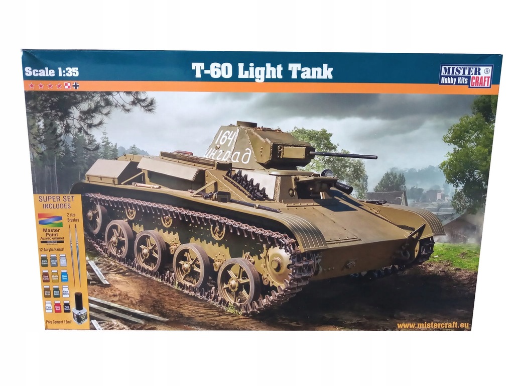 Plastikowy model do sklejania wrocławskiej firmy Mistercraft (Mastercraft). Model nie jest złożony, poszczególne części należy wyjąć z ramek, a następnie sklejać wg dołączonej instrukcji. Skala: 1:35 Stopień skomplikowania: 3 Długość modelu po złożeniu: 11.7 cm Szerokość: 6.5 cm Ilość elementów: 125 Klej w zestawie: 12 ml (z pędzelkiem) Farby w zestawie: 12 kolorów Pędzle: 2 sztuki