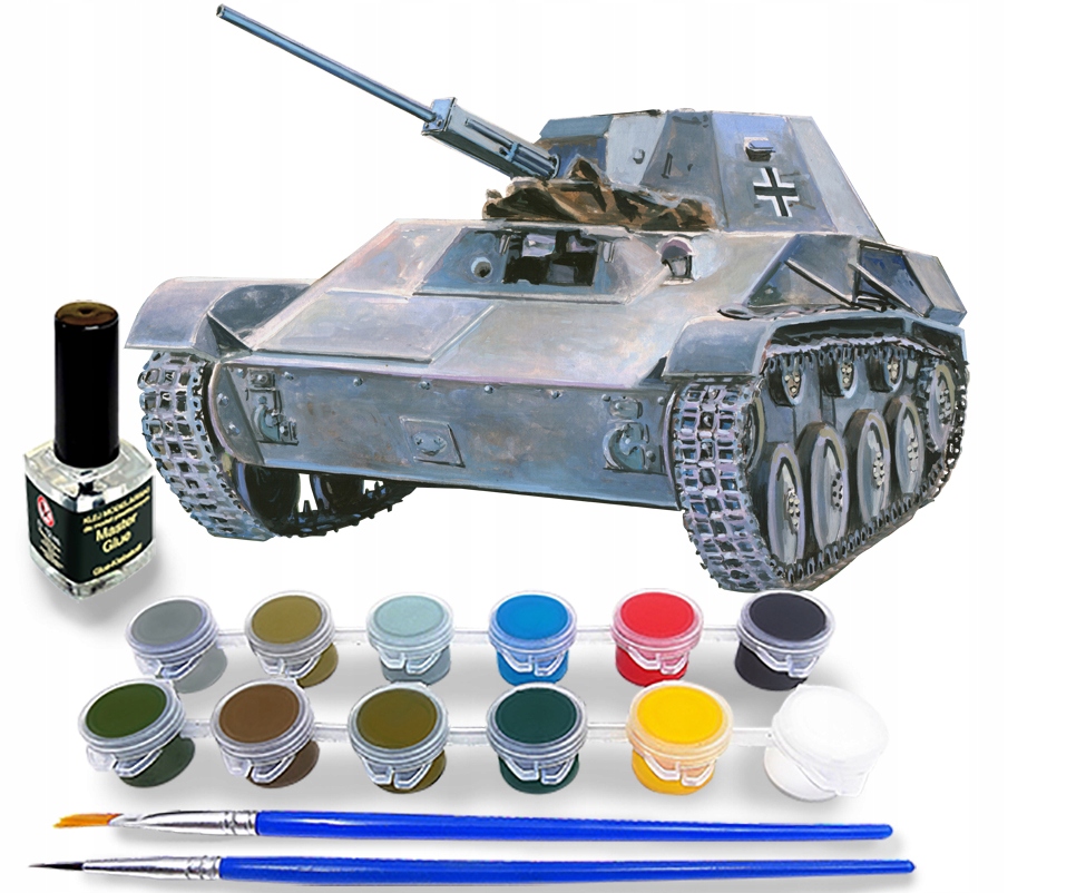 Plastikowy model do sklejania wrocławskiej firmy Mistercraft (Mastercraft). Model nie jest złożony, poszczególne części należy wyjąć z ramek, a następnie sklejać wg dołączonej instrukcji. Skala: 1:35 Stopień skomplikowania: 3 Długość modelu po złożeniu: 11.7 cm Szerokość: 6.5 cm Ilość elementów: 125 Klej w zestawie: 12 ml (z pędzelkiem) Farby w zestawie: 12 kolorów Pędzle: 2 sztuki
