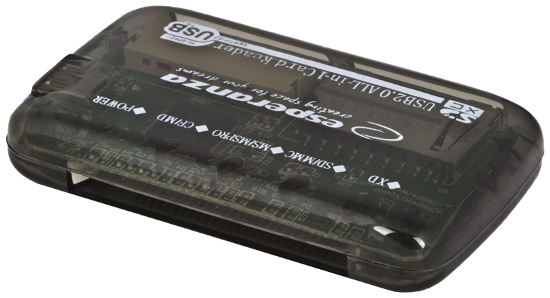 - Obsługuje: SDXC / SDHC / SD / MMC / RS-MMC / miniSD (adapter) / microSD (adapter) / TF (adapter) / XD / MS / MS Duo / MS PRO Duo / M2 (adapter) / CF / MD. Transfer danych do 480 Mb / s (USB 2.0).