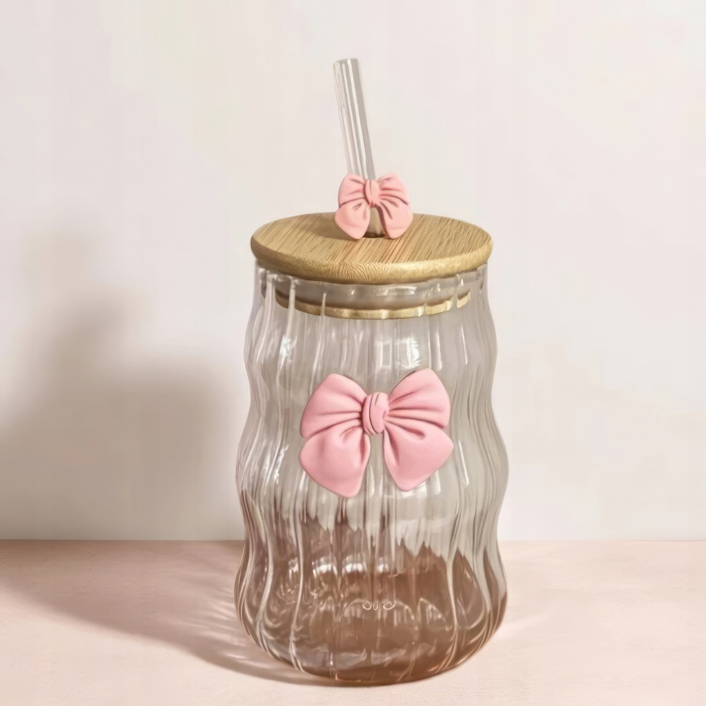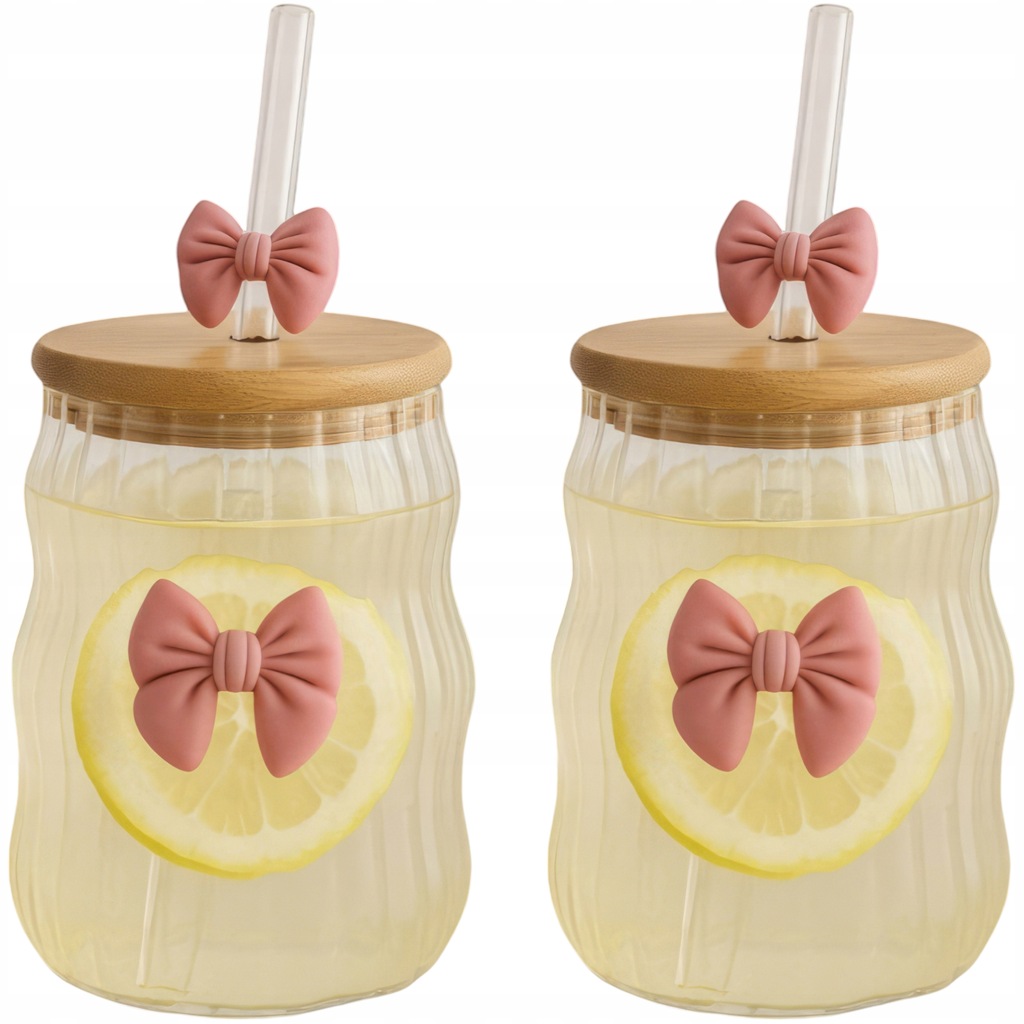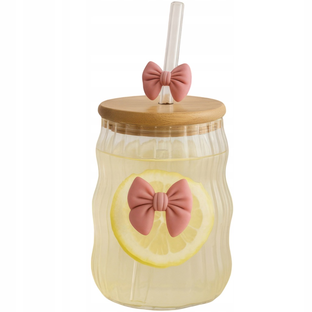 ECARLA SZKLANKA Z KOKARDKĄ Z PRZYKRYWKĄ I SŁOMKĄ 530ml