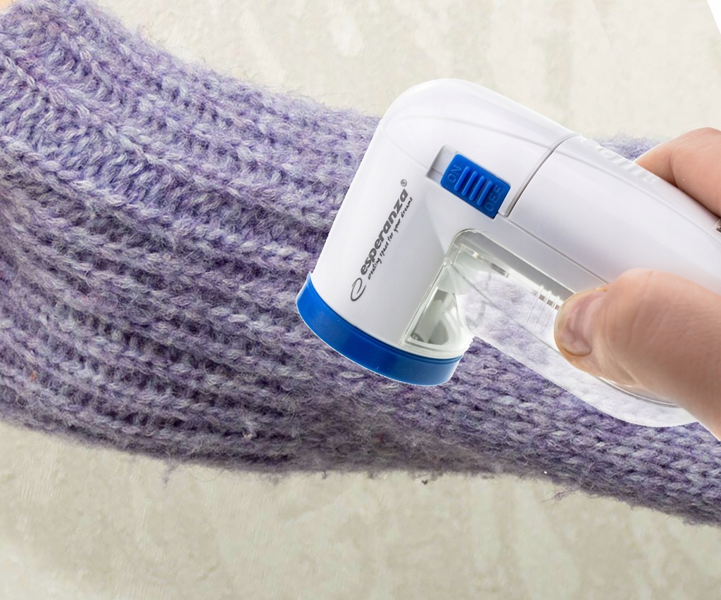 Praktyczne urządzenie do usuwania zmechaceń z ubrań, tapicerki, koców i innych tekstyliów, dzięki czemu dłużej wyglądały będą one jak nowe. Ergonomiczny kształt idealnie dopasowuje się do dłoni. Przeźroczysty pojemnik na odpady pokazuje kiedy go opróżnić. Golarka usuwa zmechacenia szybko i skutecznie.