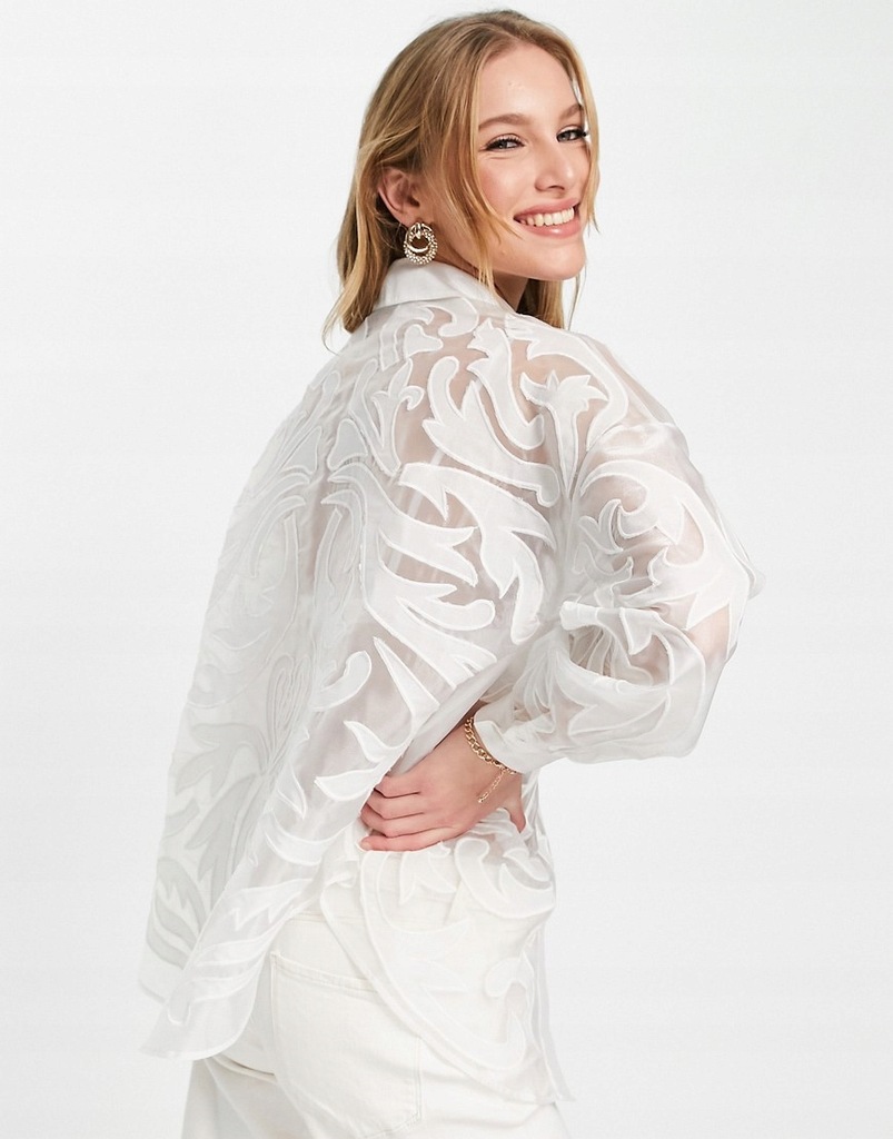ASOS EDITION Biała koszula z organzy z aplikacjami M/38