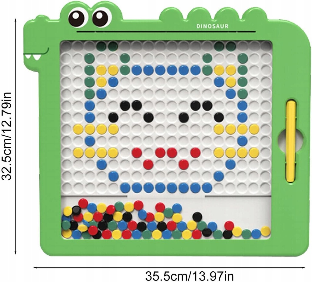 - 【Używana wiele razy】Bo urocza magnetyczna tablica do rysowania może być używana w kółko, dzieci mogą używać magnetycznego pióra do podnoszenia, przeciągania i upuszczania kolorowych okrągłych fasolek, stawiać tablicę prosto i łatwo ją wymazywać.